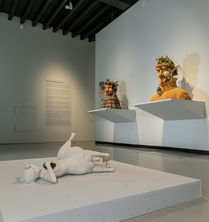 Haas's groundbreaking work reflects a sensual and poetic dialogue with the history of art. Films inspired by vases from ancient Greece, Chinese scrolls from the Yuan Dynasty, paintings and drawings by Annibale Carracci, the ceiling frescoes of Giovanni Battista Tiepolo and the idiosyncratic work of James Ensor will be shown. A large number of sculptures are on display, many of them homages to canonical artists, such as René Magritte, Vincent van Gogh, Luis Buñuel and Giuseppe Arcimboldo.