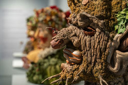 In a spectacular transformation that is typical of his work, Haas has created a group of large-scale sculptures, inspired by Giuseppe Arcimboldo’s renaissance paintings of the four seasons, comprising SPRING, SUMMER, AUTUMN and WINTER. The colossal size of the sculpture accentuates the visual puzzle of natural forms –- flowers, ivy, moss, fungi, vegetables, fruit, trees, bark, branches, twigs -– as they are recycled to form four human portraits, each representing an individual season. The result is at once grotesque, earthy, and exuberant.